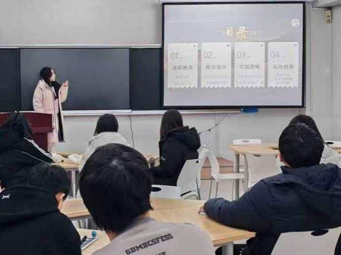 整场分享会内容翔实、贴近实际,既有英语专业学生的求职共性指导,也包含跨领域就业的突破路径分析。高美玲结合自身从初期的迷茫到后期的从容应对到逐步收获理想Offer 的成长经历,为在场同学带来了真切启发与鼓舞。