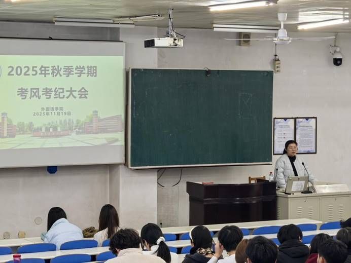 为筑牢学风建设根基、强化学生诚信意识,近日,外国语学院组织开展考风考纪教育大会,本次大会由辅导员杨乐乐主讲,外国语学院全体本科生、研究生参会。