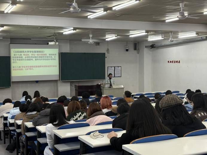 会议宣读了《沈阳建筑大学学生考试规定》,帮助同学们明确了考试的基本规则和要求;宣读了《沈阳建筑大学学生纪律处分规定》和《沈阳建筑大学学生管理规定》,重点说明违纪行为的认定标准及处分措施,同时结合典型案例,深入剖析考试作弊的危害性及严重后果,提醒学生切勿触碰“高压线”。会议还围绕注意事项和情绪化解等方面对同学们进行了考前动员,鼓励同学们科学安排时间,自觉遵守考场纪律,以真实水平检验学习成果,共同营造积极向上的学习氛围。