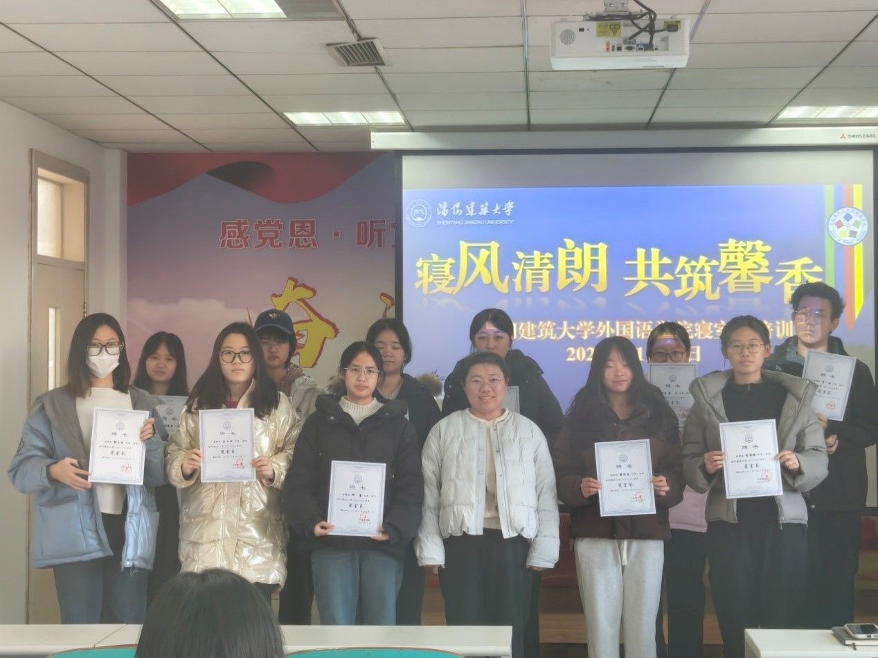 为进一步加强学生宿舍管理,提升寝室长责任意识与管理能力,外国语学院于2025年11月10日组织开展“寝风清朗,共筑馨香”寝室长素质能力提升培训,外国语学院辅导员杨乐乐,学院全体寝室长参加了本次培训。
